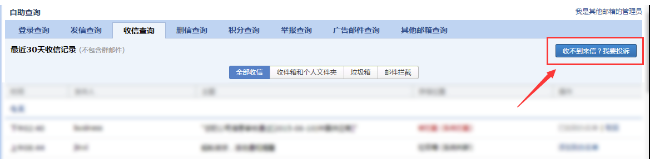 1. 在收信查询界面,点击右上角的“投诉”按钮(如下图):