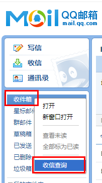 1. 打开QQ邮箱后,在“收件箱”处右击鼠标,并选择“收信查询”(如下图):
